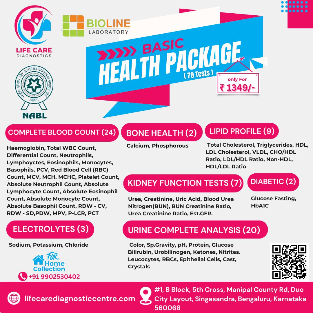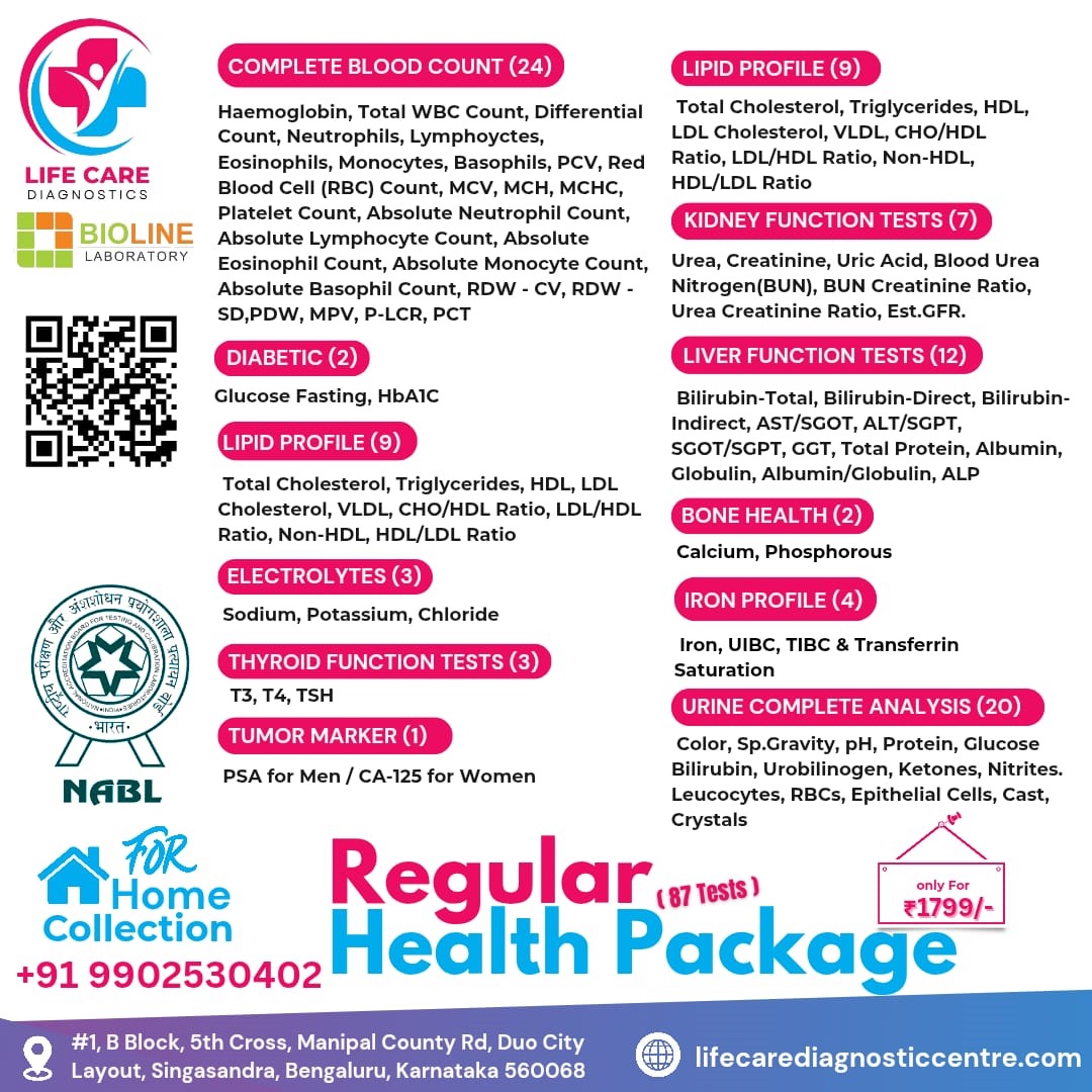 Choose Bioline’s Regular Health Package at Life Care Diagnostics, Singasandra.