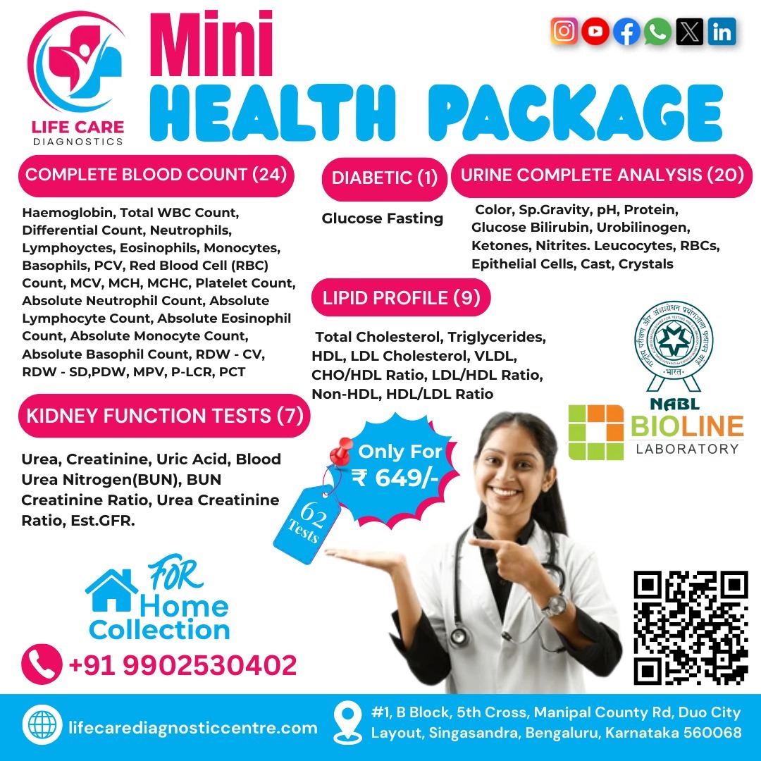 Bioline’s Mini Health Package Now Available at Life Care Diagnostics, Singasandra.