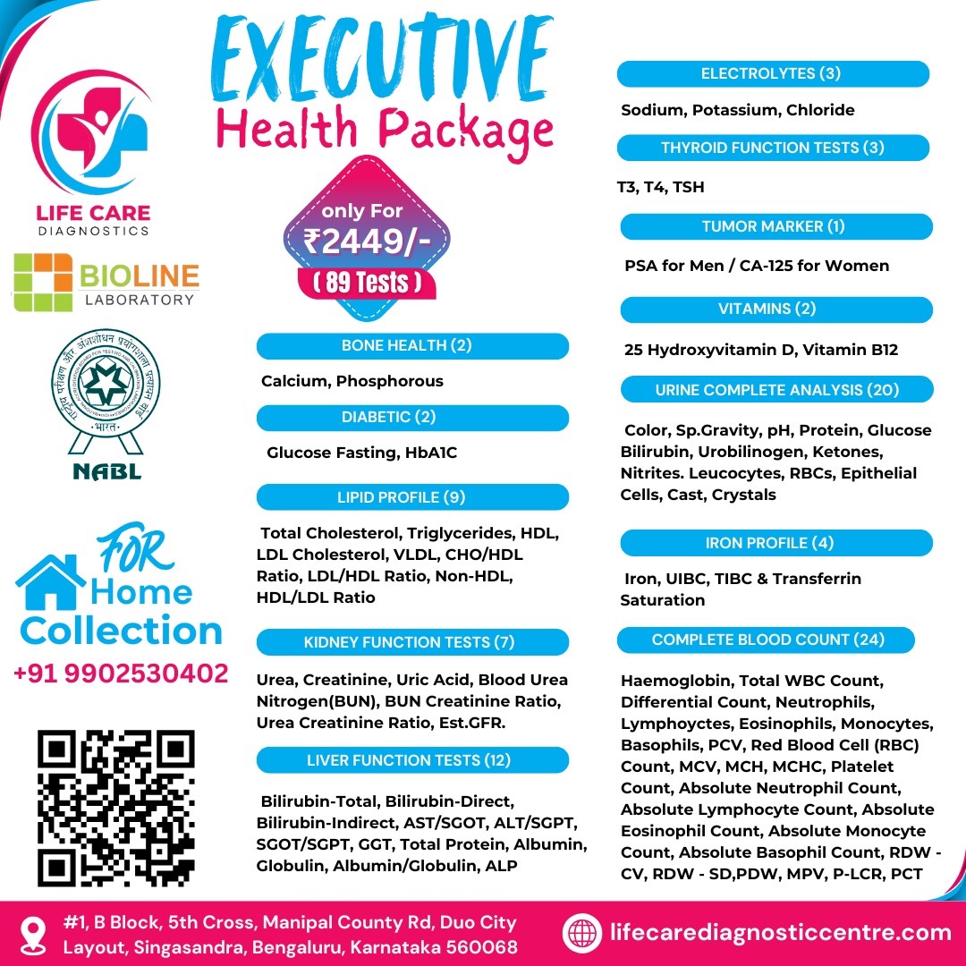 Get Bioline’s Executive Health Package at Life Care Diagnostics, Singasandra, Bangalore.